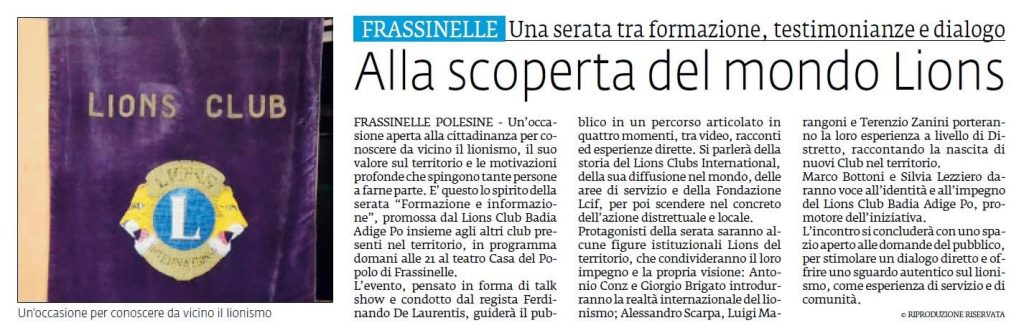 Editoriale del Governatore Roberto Limitone che, a valle del XXX Congresso di apertura, traccia le linee guida lionistiche dell’annata 2025/2026.