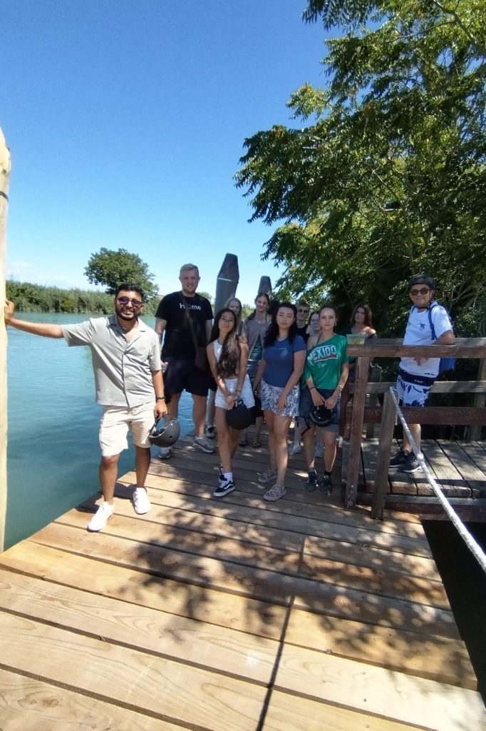 La prima tappa dell’avventura, lo scorso 17 luglio, ha portato i giovani ospiti alla scoperta di uno dei tesori più autentici del territorio veneto: i casoni della laguna di Caorle. Accompagnati da una guida cicloturistica esperta, il gruppo ha percorso in bicicletta i sentieri che si snodano poco distante dal centro storico, immergendosi completamente nell’ecosistema lagunare. I casoni, tradizionalmente usati dai pescatori come ricoveri temporanei, hanno rappresentato per molti una scoperta affascinante. Il percorso cicloturistico ha permesso ai partecipanti di comprendere meglio il parco naturalistico, dove la biodiversità del territorio si manifesta in tutta la sua ricchezza.