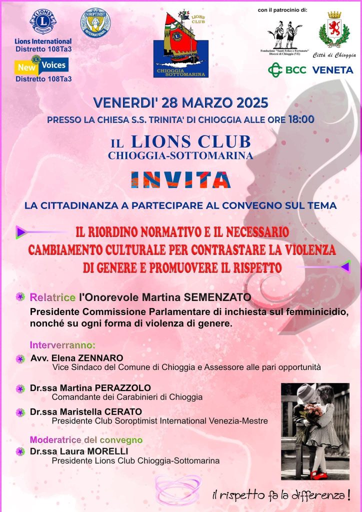 Il Lions Club Chioggia Sottomarina contro la violenza di genere