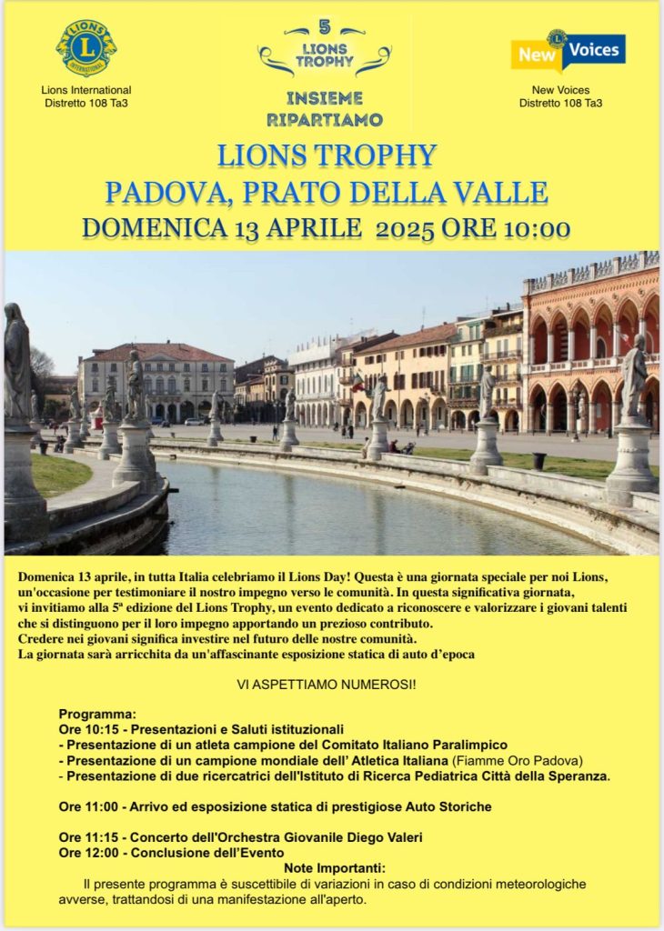 Domenica 13 aprile, in occasione della celebrazione del LIONS DAY, anche le piazze venete, come quelle del resto del paese, vedranno la presenza di centinaia di volontari della più grande organizzazione non governativa del mondo mostrare e raccontare quanto stanno facendo per il bene delle comunità in cui vivono.