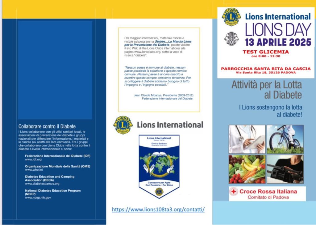 Nelle piazze venete non sarĆ solo possibile conoscere chi sono e quanto stanno facendo i Lions, ma in molti casi sarĆ possibile anche toccarlo con mano, grazie al personale sanitario che effettuerĆ screening gratuiti per il diabete, controlli e visite dei più giovani contro lāambliopia, misurazione della pressione arteriosa e della saturazione, ma verranno fornite anche informazioni sui service che riguardano tra lāaltro ambiente, scuola, Intelligenza Artificiale, mentre in alcune localitĆ verranno premiati i giovani talenti e si daranno informazioni su come poter concorrere alle borse di studio riservate agli studenti.