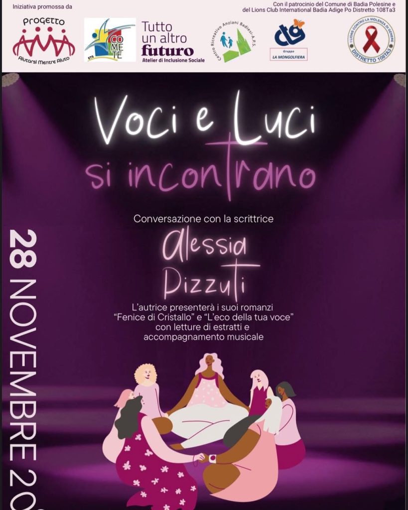 Il Club Badia Polesine Adige Po ha promosso il 28 novembre l’evento “Voci e luci che si incontrano”, conversazione con Alessia Pizzuti, autrice di L’eco della tua voce, libro testimonianza sulla violenza di genere.