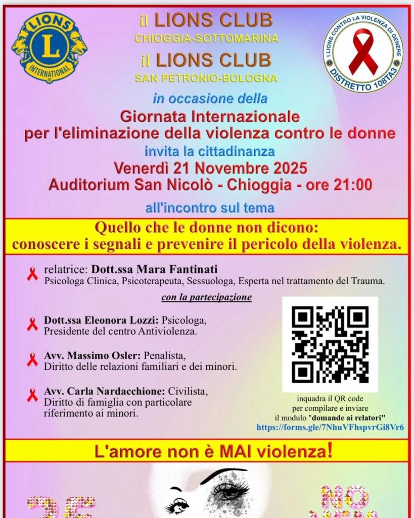 Il Club Chioggia Sottomarina ha organizzato il 21novembre l’incontro “Quello che le donne non dicono” per affrontare il tema “conoscere i segnali e prevenire”.