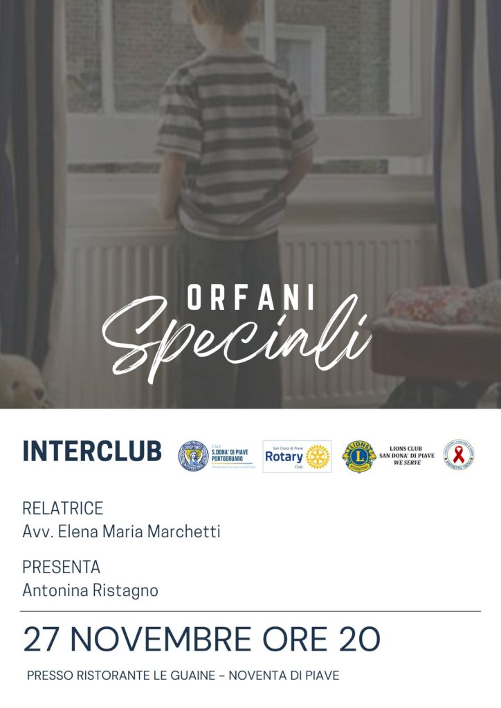 Il Club San Donà di Piave il 27 novembre ha organizzato un interclub con Rotary e Soroptimist sul tema gli “Orfani speciali”, figli sopravvissuti ai femminicidi, con relatrice l’Avv. Elena Maria Marchetti.